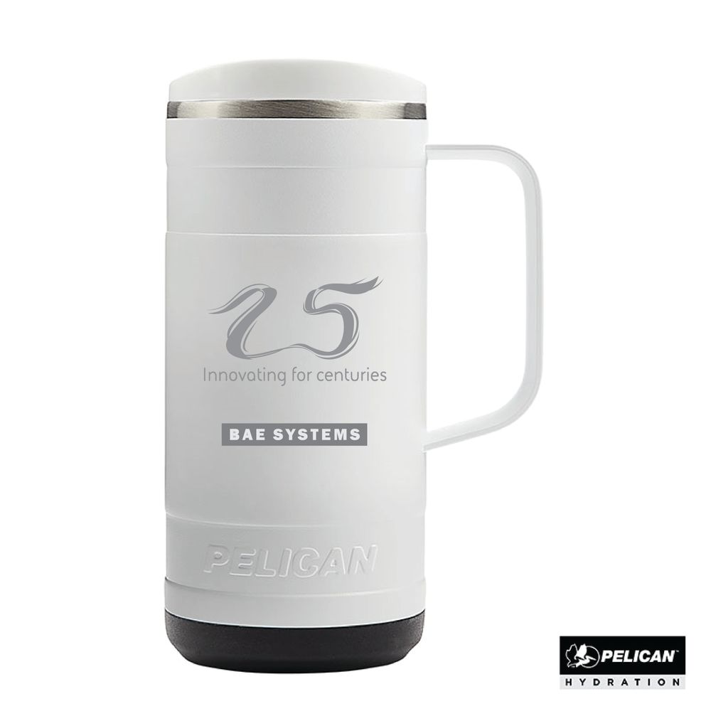 sku: PL1009-25Whether sipping a hot cup of tea in the morning or a freshly brewed iced coffee in the afternoon, the 18 oz. Pelican Ridge™ Travel Mug provides you with a great drinking experience no matter where you are. Made from high-quality pro-grade 90% recycled 18/8 stainless steel, this sustainable hydration choice has copper lining and vacuum insulation that keeps drinks hot for 6 hours or cold for 12 hours. It not only looks great in the great outdoors but will fit most car cup holders making it a perfect commuting or road trip companion. The unique two-tone push-on lid with slider closure is splash resistant and has a translucent top so you can see just how much drink you have remaining. The Pelican Ridge™ also features a removable silicone base that provides extra stability and protection from bumps and scrapes, an ergonomic steel handle and a durable and protective powder-coat finish. FDA compliant and BPA Free.